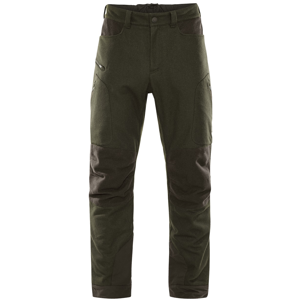 Die Metso Winter Hose ist aus einem windabweisenden, gefilzten Wollstoff gefertigt, der zu jeweils 50 % aus Wolle und Polyester besteht. Dieser Mix macht die Hose warm und strapazierfähig. Das dichte Wollgemisch ist für sich allein schon wasserabweisend, dennoch hat das Material zusätzlich eine umweltfreundliche Bionic Finish® Eco-Behandlung erhalten, die die natürlichen wasser- und schmutzabweisenden Eigenschaften der Wolle verstärkt. Im Gegensatz zu vielen anderen unserer Hosen besitzt die Metso Winter Hose keine Membran. Stattdessen ist sie mit einem dicken 120-g-Futter aus 100 % reiner Wolle vom deutschen Produzenten Lavalan ausgestattet. Die Lavalan-Wolle stammt von europäischen Schafen, ist mulesingfrei und wird in Deutschland unter strengen Anforderungen an die Rückverfolgbarkeit und das Tierwohl hergestellt. Da die Hose statt mit einer Membran mit mehreren Schichten warmer Wolle ausgestattet ist, ist sie sehr geräuscharm und bietet eine Reihe weiterer Vorteile bei niedrigen Temperaturen: Trotz des kräftigen Materials ist die Hose dank der natürlichen Eigenschaften der Wolle temperaturregulierend und atmungsaktiv und bietet selbst an den kältesten Tagen einen fantastischen Komfort. Die Metso Winter Hose hat eine hohen Bund, sodass der untere Rücken bei der Ansitzjagd geschützt ist. Die ausgeformten Knie sind mit einer zusätzlichen Stoffschicht verstärkt. Darüber hinaus besitzt die Hose zwei offene Fronttaschen, eine Tasche mit Reißverschluss und eingenähtem Patronenhalter am rechten Oberschenkel sowie zwei geräumige schräge Schenkeltaschen mit Reißverschluss. Die Hose ist an den Knöcheln mit strapazierfähigem Cordura verstärkt und mit Klettbändern verstellbar.