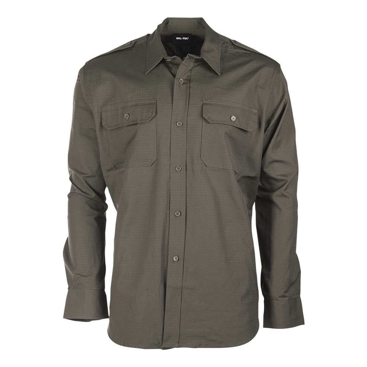 Langarm-Hemd in robuster Ripstop-Qualität. – 2 aufgesetzte Brusttaschen mit Patten zum Knöpfen – Knöpfe an den Manschetten – Schulterklappen – Abgerundeter Saum Material: 100% Baumwolle Waschbar bis 30° Nicht Trockner geeignet