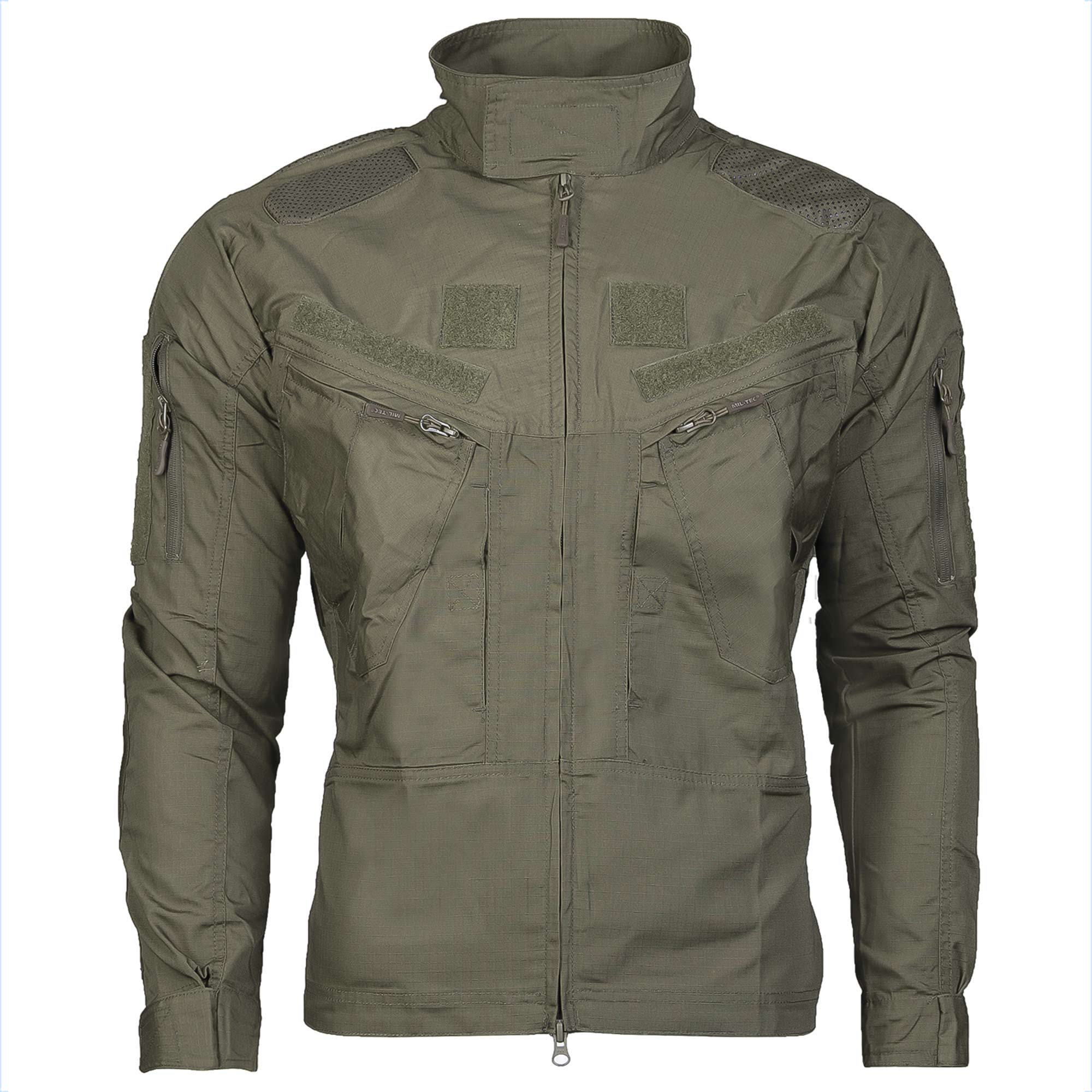 Körpernahe Combat Jacke Chimera. – verdeckter YKK 2-Wege-Frontreißverschluss – hoch geschlossener Kragen mit Klettverschluss – flexible Polsterung im Schulter- und Ellbogenbereich – Polsterung mit Noppen für mehr Grip – 2 Brusttaschen mit verdecktem Reißverschluss – 2 Schubtaschen mit Klettverschluss – 4 Klettflächen im Brustbereich für Namenspatch und Patches – große Klettfläche an Oberarmen mit Reißverschluss zur Belüftung oder Verstauen von Papieren – Ärmelabschluss per Klettverschluss verstellbar – seitliche Elastikeinsätze im Hüftbereich für mehr Bewegungsfreiheit – Netzeinsätze im Rückenbereich zur Belüftung Material: 65% Polyester, 35% Baumwolle Ripstopgewebe Besatz: 100% Polyester (Oxford) Polsterung: EVA Schaumstoff waschbar bis 30°, nicht Trockner geeignet