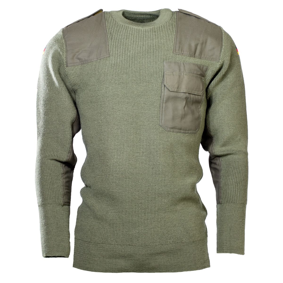 Original Pullover der Bundeswehr. Gut geeignet für die kalte Jahreszeit. – Brusttasche mit Klettverschluss und integriertem Stiftköcher (je nach Verfügbarkeit) – Ellenbogen- und Schulterbesatz – Schulterklappen – Strickbündchen an Ärmeln und Abschluss Material: 80% Wolle, 20% Polyacryl