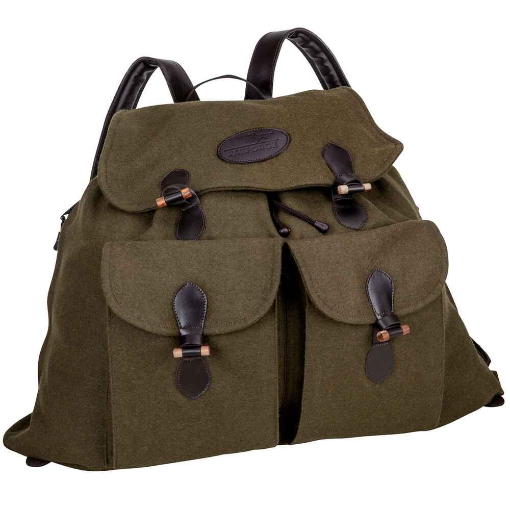 Praktischer Jagdrucksack aus strapazierfähigem Loden. lautlos dank Holz-Knebelverschlüsse beidseitige seitliche Eingriff-Reißverschlüsse 2 Fronttaschen mit zusätzlicher Reißverschluss-Innentasche Einschub für Sitzkissen am Rücken Lederabdeckungen der Riemen-Verstellung Inkl. wasserdichter Schweißeinlage mit Tunnelzug Material: 80% Schurwolle, 20% Polyamid Besätze: Rindsleder Farbe: Oliv Maße Rucksack (LxB): ca. 70×57 cm Maße Schweißeinlage (LxB): ca. 70×57 cm Gewicht: 1042 g